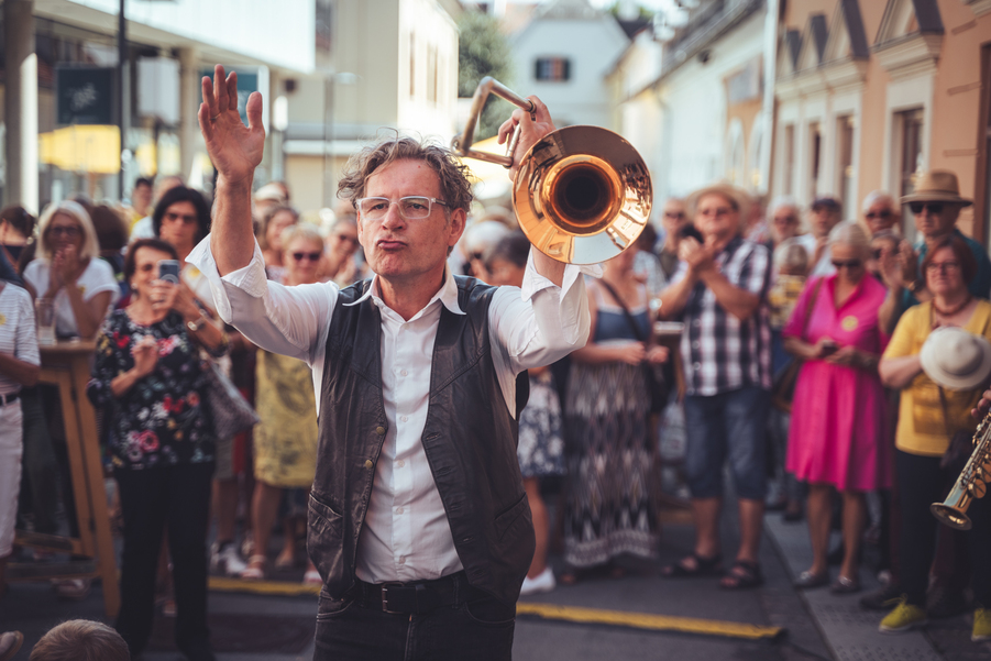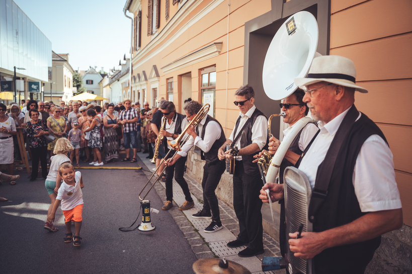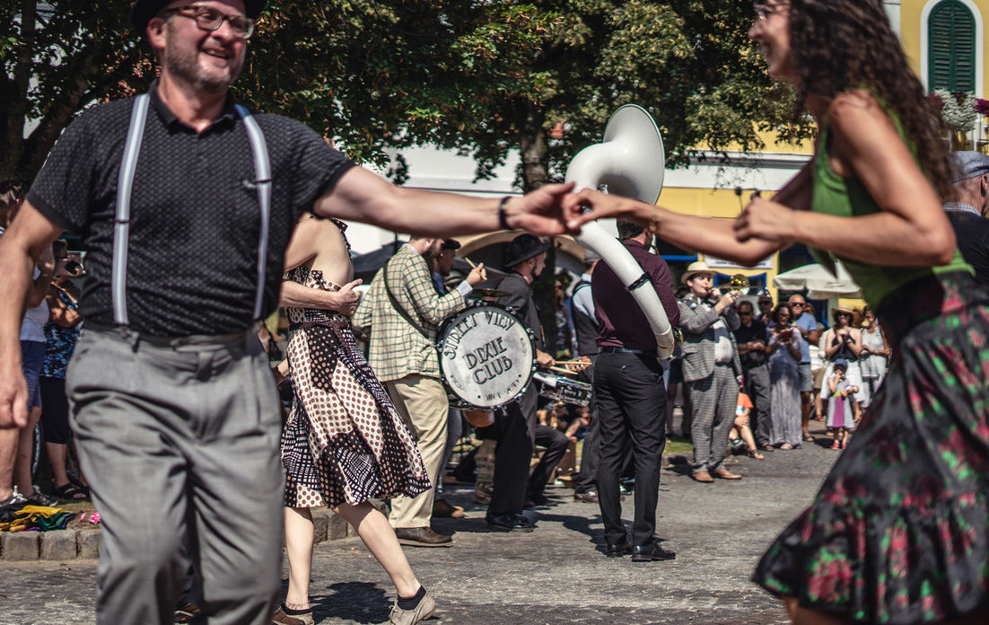 The only festival of traditional jazz music (like Dixieland, Jazz Manouche, Swing, New-Orleans-Jazz, Stride) in Austria also includes the Styrian landscape, cuisine and conviviality: therefore, in addition to the international concerts in the Kunsthaus Weiz, the program also includes a “Swinging Alm Breakfast” and the “New Orleans Street Music Festival” in the city center of Weiz, concerts and sessions in the courtyards, bars and pubs. The annual dance highlight of the festival – the Lindy Hop dance festival with The Lindy Cats (AUT) – takes over the city center every year as part of the New Orleans Street Music Festival.